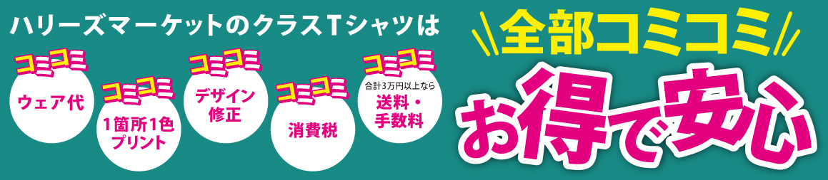 色々コミコミで元々お得なハリーズマーケットのクラTは、お得な割引を使って更に1枚あたり最大200円引!使い方も簡単だからみんなお得に作れます!クラTを超安く作るならハリーズマーケットにお任せ!