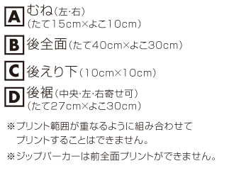 ※プリント場所を増やしたり色数を増やす場合は、1箇所1色ごとに上記追加料金を足してください。
