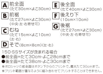 ※プリント場所を増やしたり色数を増やす場合は1箇所1色増えるごとに上記追加料金を足してください。