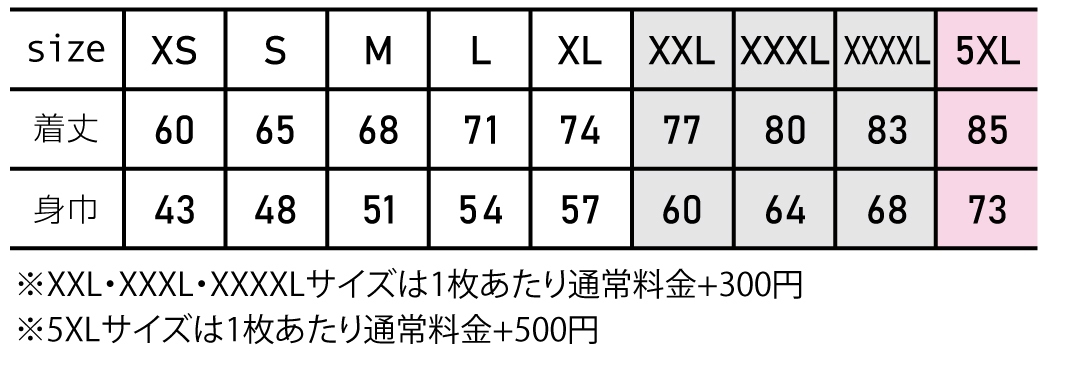※プリント場所を増やしたり色数を増やす場合は1箇所1色増えるごとに上記追加料金を足してください。