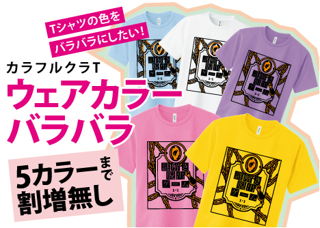 ※20枚以上のご注文で、デザインが共通ならウェアカラーが5カラーまで割増無しで作れます。6カラー目以降には1カラー追加毎に+200円(合計金額に)です。
