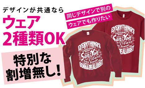 ※デザインを含めプリント場所やプリントカラーも共通で作れる場合に限ります。