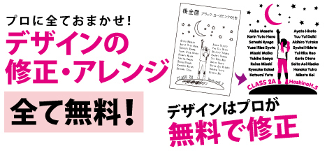 ※デザイン製作に関しては全て無料ですが、お客様理由による度重なる大幅な変更には別途修正代を頂く場合もございます。