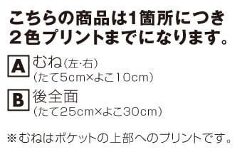 ※プリント場所を増やしたり色数を増やす場合は1箇所1色増えるごとに上記追加料金を足してください。