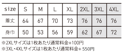 ※プリント場所を増やしたり色数を増やす場合は1箇所1色増えるごとに上記追加料金を足してください。