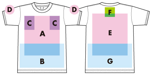※プリント場所を増やしたり色数を増やす場合は1箇所1色増えるごとに上記追加料金を足してください。