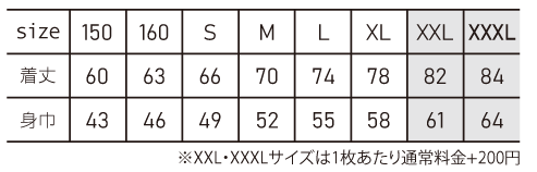 ※プリント場所を増やしたり色数を増やす場合は1箇所1色増えるごとに上記追加料金を足してください。