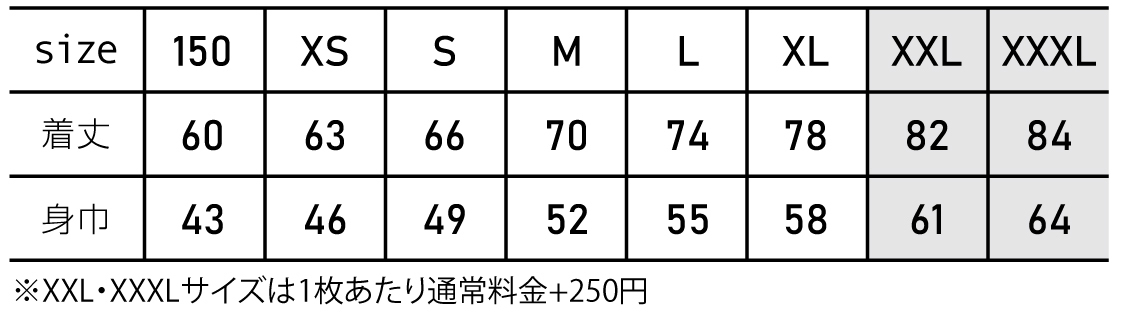 ※プリント場所を増やしたり色数を増やす場合は、1箇所1色ごとに上記追加料金を足してください。