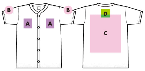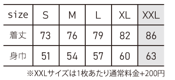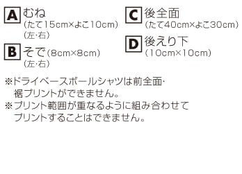 ※プリント場所を増やしたり色数を増やす場合は1箇所1色増えるごとに上記追加料金を足してください。