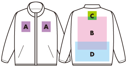 ※プリント場所を増やしたり色数を増やす場合は1箇所1色増えるごとに上記追加料金を足してください。
