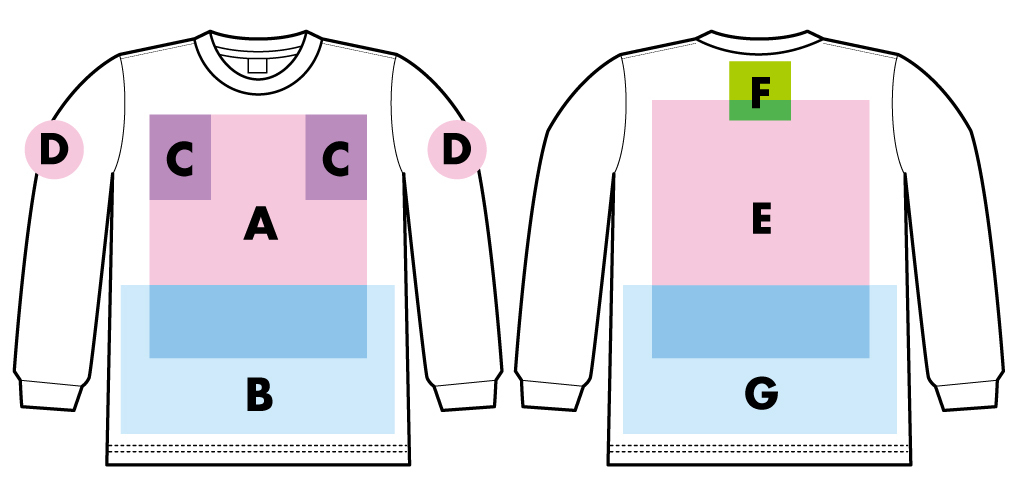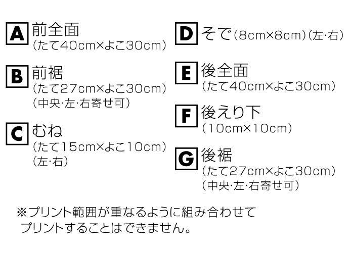 ※プリント場所を増やしたり色数を増やす場合は1箇所1色増えるごとに上記追加料金を足してください。